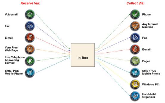 Ø 由固定/移動電話運(yùn)營商、ISPs 以及ASPs提供服務(wù)。服務(wù)包括單一信息通知到完全統(tǒng)一信息。用戶可將其所有類型的信息存儲在一個(gè)信箱中并且通過電話或網(wǎng)絡(luò)瀏覽器獲取。