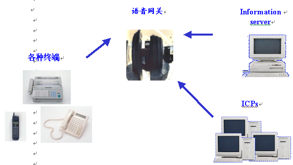 在這樣的體系結(jié)構(gòu)中,各種終端通過PSTN網(wǎng)絡(luò)聯(lián)接到語音網(wǎng)關(guān),而通過語音網(wǎng)關(guān)來訪問后臺(tái)的數(shù)據(jù)服務(wù)、應(yīng)用服務(wù),或者通過互聯(lián)網(wǎng)絡(luò)訪問各個(gè)語音ICP。