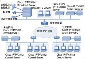 企業(yè)廣域網(wǎng)到分支機構的帶寬從128kbps到2Mbps,這樣高的帶寬為企業(yè)在廣域網(wǎng)上開展視頻廣播和視頻會議奠定了基礎。采用Cisco的基于IP的視頻系統(tǒng)IP/TV可以提供以下功能:企業(yè)IP/TV視頻系統(tǒng)建設