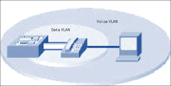 由于QoS、可擴(kuò)展性、可管理性和安全性等原因,IP電話設(shè)備和IP數(shù)據(jù)設(shè)備應(yīng)該部署在兩個邏輯上獨(dú)立的網(wǎng)段中。將IP語音與傳統(tǒng)IP數(shù)據(jù)網(wǎng)分離能大大提高抗攻擊能力,而且允許使用相同的接入層、核心層和分布層。