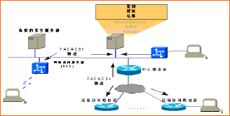 (TACAS:Terminal Access Controller Access Control System--終端訪問控制系統(tǒng))有了這樣的服務(wù)器以后,連接在這個(gè)網(wǎng)絡(luò)的所有用戶,不管它需要以什么樣的方式訪問網(wǎng)絡(luò)設(shè)備,都必須通過服務(wù)器的安全性監(jiān)測。由于服務(wù)器上可以運(yùn)行功能很強(qiáng)的安全性方面的軟件,可以完全滿足BOSS系統(tǒng)的安全需求。在路由器、撥號(hào)訪問服務(wù)器和安全服務(wù)器之間傳送的可以是經(jīng)過加密的有關(guān)網(wǎng)絡(luò)安全協(xié)議的數(shù)據(jù)流。
