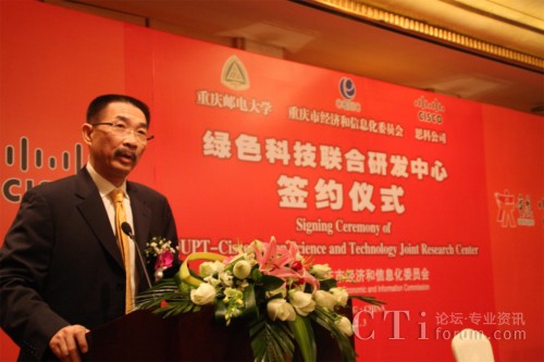 重慶市副市長童小平與思科公司全球副總裁林正剛出席簽約儀式,并共同為“綠色科技聯(lián)合研究實驗室”揭牌。儀式由重慶市政府人員副秘書長廖慶軒主持,重慶市經(jīng)濟(jì)與信息化委員會黨組書記沐華平副主任作為見證人,與重慶郵電大學(xué)校長陳流汀教授、思科中國研發(fā)中心總經(jīng)理常詢傳博士共同在協(xié)議書上簽字,思科公司和市級相關(guān)部門負(fù)責(zé)人參加了簽約儀式。
