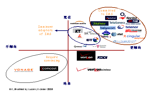 Yankee集團(tuán)的IMS調(diào)查,朗訊在IMS領(lǐng)域有著絕對(duì)的領(lǐng)先優(yōu)勢(shì),在技術(shù)和試驗(yàn)網(wǎng)上都優(yōu)越于競爭對(duì)手。