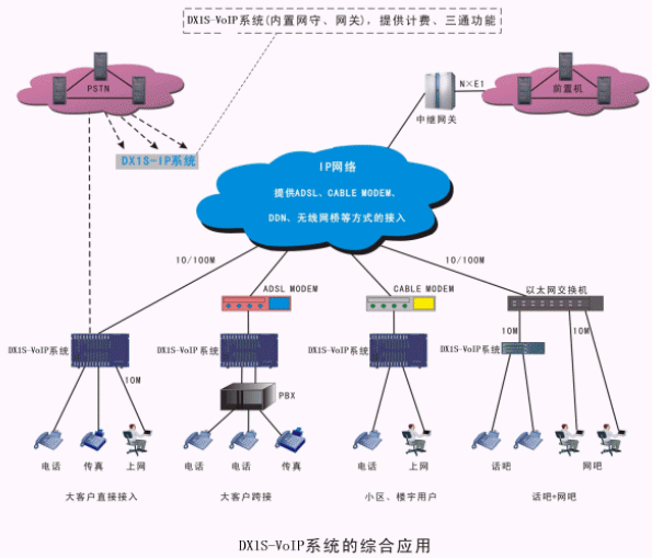 ·DX1S-VoIP系統(tǒng)可提供ADSL、以太網(wǎng)、無線網(wǎng)橋等方式接入,均可滿足接入要求。