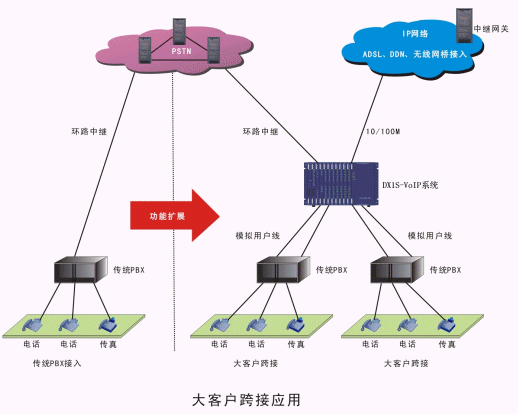 ·DX1S-VoIP系統(tǒng)可在原PBX和IP網(wǎng)間進行跨接,不改變用戶使用電話、傳真的習(xí)慣。
