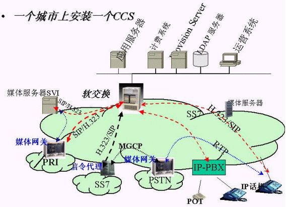 下一代電信網(wǎng)絡(luò)(NGN)體系結(jié)構(gòu)為新興的電信運(yùn)營(yíng)商真正介入端到端的話音業(yè)務(wù)提供了契機(jī)。目前,銅纜資源為中國(guó)電信所壟斷,許多新興的電信運(yùn)營(yíng)和寬帶運(yùn)營(yíng)商正為如何真正介入語(yǔ)音電話而煩惱。但是隨著技術(shù)的進(jìn)步,語(yǔ)音編解碼的出現(xiàn),在IP網(wǎng)絡(luò)上傳送語(yǔ)音的技術(shù)已經(jīng)較為成熟。同時(shí)在下一代電信網(wǎng)絡(luò)體系結(jié)構(gòu)中解決了phone to IP-phone,IP-phone to phone 的地址映射問(wèn)題,為新電信運(yùn)營(yíng)商介入語(yǔ)音業(yè)務(wù)提供了技術(shù)手段。同時(shí),各個(gè)地方寬帶城域網(wǎng)、接入網(wǎng)的建設(shè),特別是寬帶接入網(wǎng)建設(shè)為基本為都提供了用戶提供10M速率的接入。而且寬帶接入網(wǎng)建設(shè)上的競(jìng)爭(zhēng)日益激烈,中國(guó)電信、長(zhǎng)城寬帶、聯(lián)通、網(wǎng)通都有一定的寬帶接入用戶的份額,為新興的電信運(yùn)營(yíng)商介入語(yǔ)音業(yè)務(wù)提供了物理手段。隨著信息產(chǎn)業(yè)部對(duì)各電信運(yùn)營(yíng)商互聯(lián)互通要求的加強(qiáng),為新興的電信運(yùn)營(yíng)商介入語(yǔ)音業(yè)務(wù)提供了較好的可運(yùn)營(yíng)環(huán)境。雖然目前在IP網(wǎng)絡(luò)上沒有提供Qos保證的機(jī)制,但IP骨干和接入網(wǎng)為用戶提供充足的帶寬同樣能做到較好的話音質(zhì)量。IP電話的出現(xiàn)也為有線網(wǎng)路介入話音業(yè)務(wù)提供了技術(shù)手段。同時(shí)目前在建成的寬帶接入網(wǎng)上應(yīng)用的只有上網(wǎng)業(yè)務(wù),如何增加寬帶接入的應(yīng)用,提高寬帶接入網(wǎng)的收入,是寬帶運(yùn)營(yíng)商最關(guān)心的事情。我們能夠提供一整套的解決方案利用寬帶接入(五類線)為新興的寬帶運(yùn)營(yíng)提供市話、長(zhǎng)話業(yè)務(wù)。