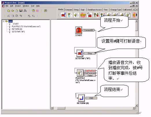 速能呼叫中心中間件的IVR流程開發(fā)接口簡單易學,編寫人員并不需要了解底層的實現(xiàn)原理、Dialogic硬件等知識,而將精力完全放在業(yè)務(wù)開發(fā)上即可。