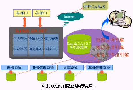 OA.NET采用了應(yīng)用服務(wù)器、群件數(shù)據(jù)庫(kù)、關(guān)系數(shù)據(jù)庫(kù)三元合一的技術(shù)體系架構(gòu),集成了XML、Web Service等業(yè)界最新技術(shù),能夠在Win2000以及Sun、IBM、HP等多種Unix、Linux環(huán)境下運(yùn)行,并具有良好的平臺(tái)兼容性。OA.NET系統(tǒng)具有高度靈活性、簡(jiǎn)單實(shí)用性、知識(shí)管理解決方案、和業(yè)務(wù)系統(tǒng)的無縫融合、高度的個(gè)性化等特色,被業(yè)內(nèi)專家認(rèn)為代表了最新的辦公自動(dòng)化發(fā)展水平,并引領(lǐng)著辦公自動(dòng)化的先進(jìn)發(fā)展方向。