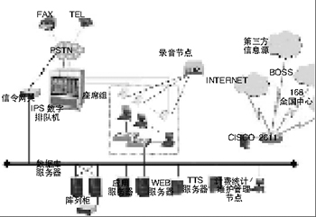 北京電信交互式電話會(huì)議系統(tǒng)的結(jié)構(gòu)如圖所示。