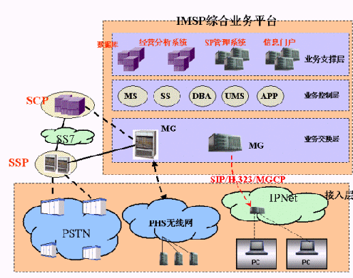 4、 支持標準的SIP/H.323協(xié)議,IMSP支持IP接入,系統(tǒng)可平滑過渡到下一代網(wǎng)絡(NGN),逐步建立符合標準的服務、網(wǎng)絡和終端,徹底取代原有相對獨立的應用服務、通信網(wǎng)絡和終端。;