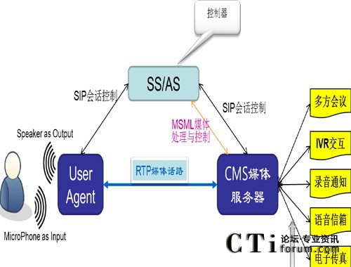 CMS軟件采用SIP信令作為呼叫控制接口,采用MSML消息作為媒體控制接口,也支持VXML腳本。