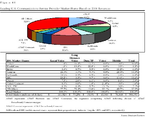 * 企業(yè)能力:由于沒有市話公司,AT&T缺乏對普通消費者的最后一公里的接入手段。收購地區(qū)性市話公司的可能性不大;而新建市話網(wǎng)絡成本巨大,不易成功。因此在2001-2002年,AT&T以超過1000億美元的巨資收購了3家地區(qū)性的寬帶接入提供商,希望以此建立與普通消費者的直接聯(lián)系。
