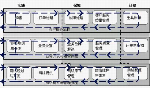 電信運營乃至整個電信企業(yè)的經(jīng)營管理也越來越倚重于電信網(wǎng)絡支持系統(tǒng)。以最短的時間向用戶提供最新的業(yè)務,對同一用戶提供豐富的消費方式的選擇,對不同用戶進行交叉銷售,乃至對價值鏈中的合作伙伴進行有效管理,這些都要求業(yè)務管理與網(wǎng)絡體系的高度整合。西方的現(xiàn)代電信服務企業(yè),都紛紛以操作支持系統(tǒng)(OSS)的要求來規(guī)范自身企業(yè)的運營,努力做到企業(yè)的每個業(yè)務操作都能在電信運營導圖(TOM)中找到相應的位置,而每個步驟和其他步驟的銜接都符合TOM的規(guī)范要求。近年提出的內(nèi)容更加廣泛的擴展電信運營導圖(eTOM)更是規(guī)范了電信業(yè)務管理的所有重要方面。