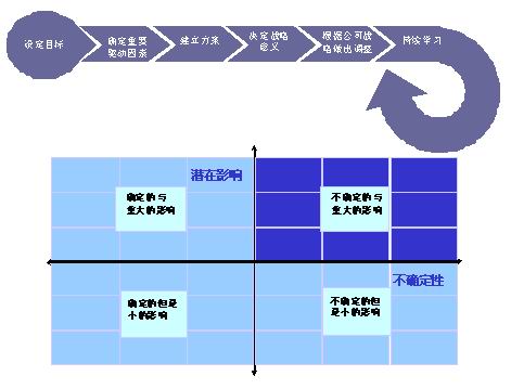 首先,是加強前景分析(Scenario Development)和早期預警(Early Warning)。前景分析即對未來可能對企業(yè)經(jīng)營有重大影響的因素進行分析,以了解他們發(fā)生的可能性和一旦發(fā)生之后對企業(yè)造成的影響,以及企業(yè)可能的防范措施。早期預警則是對這些重大影響因素出現(xiàn)的前兆進行跟蹤,以便及時應對。世界著名的醫(yī)藥公司阿斯利康公司就是利用了前景分析對傳染性疾病在美國蔓延后的影響做了充分準備,因此在美國9-11事件后的炭疽熱恐慌中向政府提供了寶貴的建議,同時也加強了自己的市場地位,其分析的前瞻性和準確性令人嘆服!