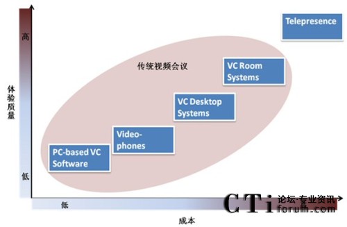 & Sullivan 咨詢顧問楊梅從體驗質量及成本兩個緯度對目前市場上的視頻會議系統(tǒng)產品進行了深入比較,發(fā)現網真在體驗質量上要明顯高于其他產品,然而其在部署成本上同樣要高于其它產品,這也是目前網真產品推廣中遇到的較大問題。如何能使客戶真正了解建立虛擬互動社區(qū)的需求,如何從貴族化走向平民化成為其蓬勃發(fā)展的關鍵。