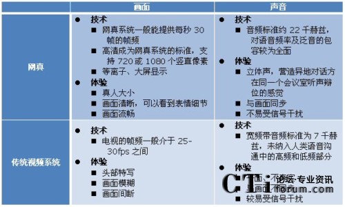 網真產品與企業(yè)的其他視覺溝通產品不同,不同于以軟件為基礎的視頻通信應用、電話視頻、以硬件為基礎的桌面視頻系統(tǒng)及群體視頻會議等各類傳統(tǒng)視頻系統(tǒng)。Frost