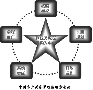 通過對金融業(yè)應(yīng)用案例的大量研究,CRCC發(fā)現(xiàn),只有將全流程先進管理和一體化客戶關(guān)系管理結(jié)合起來,才能保證金融企業(yè)在競爭和獲得關(guān)鍵客戶之后,具備為其提供貼身、增值金融服務(wù)、創(chuàng)新金融產(chǎn)品的能力。這套實施規(guī)則即“1+5”實施規(guī)則。