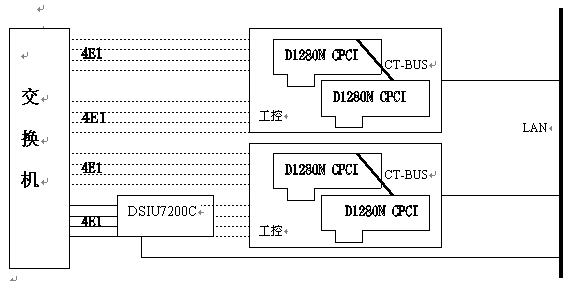 由東進(jìn)數(shù)字中繼卡D1280NC搭建基于CompactPCI架構(gòu)的語(yǔ)音系統(tǒng)完成。單機(jī)可同時(shí)提供1920通道的語(yǔ)音處理能力,系統(tǒng)提供高達(dá)4096路的無(wú)阻塞直接交換。