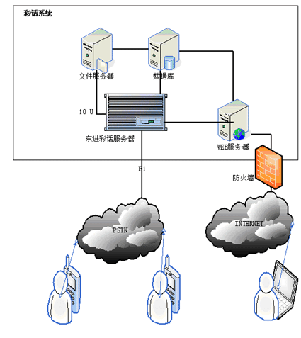 用戶在撥打電話時可撥打本系統(tǒng)特服號xxxxx+被叫電話號碼,系統(tǒng)將接通其指定的被叫電話號碼,同時加入背景音樂功能,用戶在系統(tǒng)接通被叫號碼后,在與被叫方進(jìn)行通話的過程中,就可以使用事先設(shè)定的背景了。