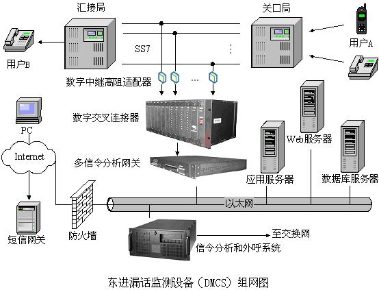 東進(jìn)漏話監(jiān)測(cè)設(shè)備(DMCS)采用大容量、高穩(wěn)定的電信級(jí)的基礎(chǔ)平臺(tái),其中數(shù)字交叉連接器和多信令分析網(wǎng)關(guān),都采用標(biāo)準(zhǔn)的19英寸機(jī)架設(shè)計(jì),便于客戶的安裝和使用,設(shè)備單平臺(tái)最大可同時(shí)接入64個(gè)E1,平臺(tái)利用東進(jìn)公司核心的信令采集技術(shù)、語(yǔ)音媒體處理和交換技術(shù),提供全程中國(guó)七號(hào)信令,支持ISUP信令方式,具有較穩(wěn)定的信令可靠性和接續(xù)速度。平臺(tái)采用與短信網(wǎng)關(guān)連接的解決方案,支持與SMC和SMG兩種連接方式。