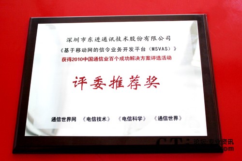 圖:東進(jìn)技術(shù)推送方案獲得評(píng)委推薦獎(jiǎng)