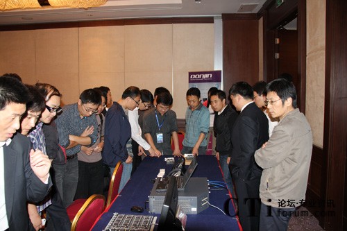 茶歇時(shí)間,嘉賓迫不及待走到東進(jìn)keygoe產(chǎn)品演示臺(tái)參觀,并與東進(jìn)工程師從技術(shù)、產(chǎn)品和應(yīng)用方面熱烈交流,尤其是對東進(jìn)帶來的兩套演示系統(tǒng)興趣濃厚,都有親密接觸一把的興致。