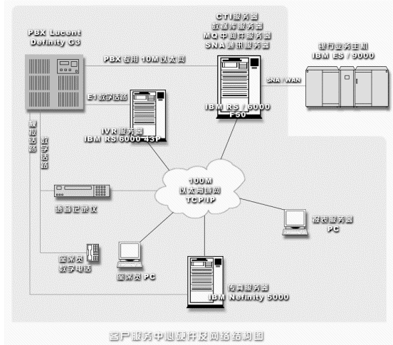 由銀證公司與IBM公司聯(lián)合開發(fā)的大規(guī)模銀行客戶服務(wù)中心系統(tǒng)。該系統(tǒng)基于朗訊DEFINITY程控交換機(jī)和IBM客戶服務(wù)系統(tǒng)開發(fā)平臺,開通200外線,120線電話銀行自動應(yīng)答,50線人工座席服務(wù)和12路傳真服務(wù)。