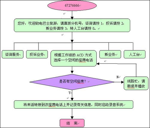 電話受理流程中的每一項(xiàng)業(yè)務(wù)均可以實(shí)現(xiàn)自動(dòng)式語(yǔ)音應(yīng)答,自動(dòng)索取傳真資料,人工服務(wù)等功能,其中,投訴業(yè)務(wù)既可以實(shí)現(xiàn)人工受理,也能夠完成系統(tǒng)自動(dòng)受理。
