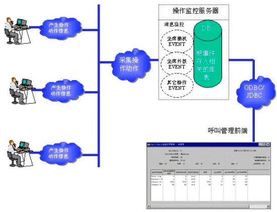 這種方案的主要優(yōu)點(diǎn)是信息非?焖俸蜏(zhǔn)確,由于消息來(lái)源只和坐席的操作動(dòng)作有關(guān),并且中間沒(méi)有其它中轉(zhuǎn)系統(tǒng),所以不會(huì)出現(xiàn)坐席已經(jīng)掛機(jī)2秒后,管理系統(tǒng)還顯示坐席通話的情況。