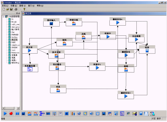IVR Maker是一個圖形化的業(yè)務(wù)流程生成環(huán)境,通過它可以生成新的IVR自動業(yè)務(wù)流程或維護(hù)舊的流程,生成的流程能夠在線調(diào)試,調(diào)試好的流程可以在線加載到IVR上運行。