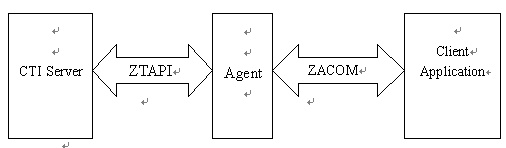 通常呼叫中心的座席軟件都需要用戶定制,以便在標(biāo)準(zhǔn)的座席功能上加入業(yè)務(wù)處理功能,并且要求能與業(yè)務(wù)系統(tǒng)交換數(shù)據(jù)。用戶可以利用ZTAPI接口直接定制自己的座席軟件,也可以使用Agent軟件自帶的COM開發(fā)接口來實現(xiàn)同樣的功能。后者是一種更便捷的機(jī)制,因為可以直接使用ZingServ®標(biāo)準(zhǔn)的座席軟件--Agent的座席功能,用戶可以把更多的精力投入到業(yè)務(wù)處理功能,使用ZACOM要求使用時需運行Agent軟件。ZACOM開發(fā)結(jié)構(gòu)示意圖如下: