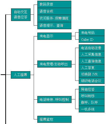 。5)系統(tǒng)具有良好的性價(jià)比,擴(kuò)充方便,并且具有很強(qiáng)的擴(kuò)充能力,可實(shí)現(xiàn)與交換機(jī)方案具有同等性能的呼叫中心。