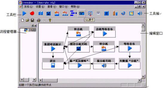 ZingServ標(biāo)準(zhǔn)版本中的IVR可以直接通過SQL語句存取Mysql,Oracle,Sybase和MSSQL Server這4種數(shù)據(jù)庫,并且可以通過變量一次對多條記錄中的多個(gè)字段進(jìn)行操作。這種方式大大減少了二次開發(fā)的工作量,給集成商和最終用戶帶來了許多方便。
