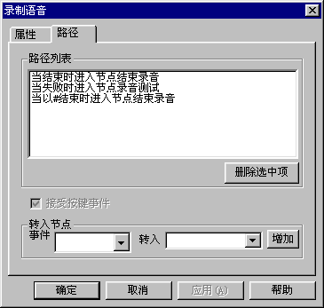 有兩種方式,一種是通過ZingServ的錄制語音模塊來靈活設(shè)置錄音的起點(diǎn)、終點(diǎn)和錄音長度,如客戶投訴和客戶建議大都通過這種方式來,這時(shí)錄音文件的名稱可以使用自定義變量,便于在二次開發(fā)中使用。