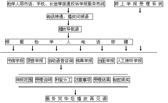 本系統(tǒng)充分借助計(jì)算機(jī)及通迅線路的優(yōu)勢,將高度普及的電話線路,同高科技的計(jì)算機(jī)處理緊密結(jié)合起來,通過電話語音這一人類最易溝通交流的途徑和手段,將檢舉人和檢察院緊密結(jié)合起來。檢舉人通過簡單的拔通服務(wù)電話,使用電話按鍵,利用自動(dòng)語音導(dǎo)航和人工服務(wù),實(shí)現(xiàn)以上熱線投訴舉報(bào)的自動(dòng)咨詢及人工服務(wù)的各項(xiàng)功能。