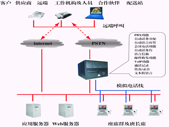 現(xiàn)代物流企業(yè)與以往的物流企業(yè)不同,不僅僅局限于物流中的某一個(gè)環(huán)節(jié),而是普遍采用了信息化管理技術(shù),如ERP、物流管理(LM)、SCM等應(yīng)用系統(tǒng),并通過Internet將遍布在各地的物流中心與客戶連接起來,形成一個(gè)高效率的物流配送網(wǎng)絡(luò)。建立在奧迪堅(jiān)基于IP的分布式呼叫中心平臺(tái)上的客戶服務(wù)系統(tǒng),以IP技術(shù)為核心在網(wǎng)絡(luò)上構(gòu)建一個(gè)語音和數(shù)據(jù)的統(tǒng)一平臺(tái),在一臺(tái)服務(wù)器上融合了CTI、PBX、ACD、VoIP、Voice、Mail,Recording,Call Routing等技術(shù)和應(yīng)用,實(shí)現(xiàn)網(wǎng)絡(luò)時(shí)代高效通訊所需所有常用功能。同時(shí)憑借其高度的靈活性和柔韌性,可以無縫地嵌入物流配送網(wǎng)絡(luò)的各個(gè)環(huán)節(jié),成為真正滿足現(xiàn)代物流企業(yè)需要的綜合性服務(wù)和營(yíng)運(yùn)中心,無論在世界的哪個(gè)角落,遠(yuǎn)程IP座席和分布的異地機(jī)構(gòu)都可以共享所有資源(語音、數(shù)據(jù)、座席),真正實(shí)現(xiàn)一個(gè)高效的、信息共享的分布式呼叫中心系統(tǒng)。
