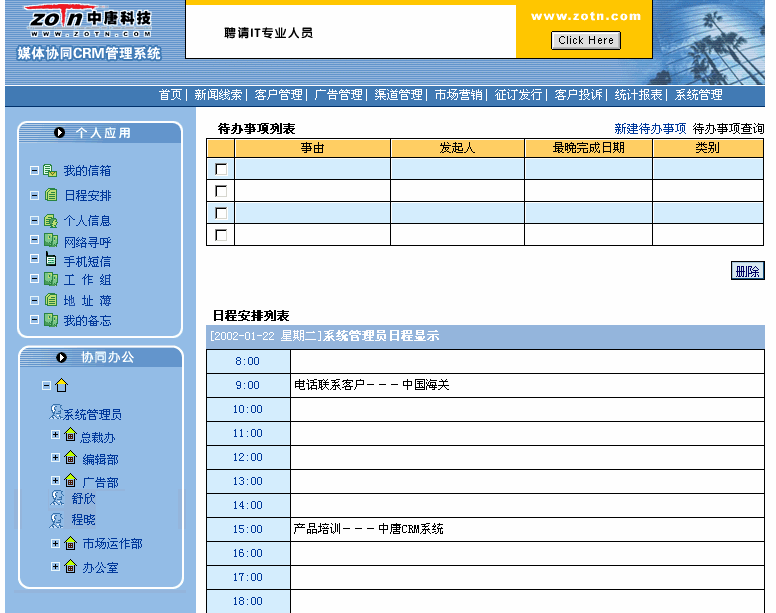 中唐科技公司推出國內(nèi)首家針對媒體行業(yè)的協(xié)同CRM產(chǎn)品系列