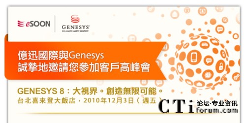 持續(xù)優(yōu)化企業(yè)績效及培養(yǎng)意見領(lǐng)袖,都是協(xié)助我們在臺灣的用戶與其客戶有更佳交流往來的重要作法,因此,我們特別籌辦了‘客戶高峰會’,全面邀集來自Genesys新加坡、香港及中國的專家和同儕與您面對面,進行互動的知識分享與意見交換。