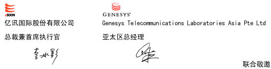 屆時,不僅有Genesys全球總裁率領資深專家向您介紹客戶關系管理領域的市場動向與未來趨勢,還帶來了全球拭目以待、發(fā)熱發(fā)光的Genesys最新產品 ── G7。此外主辦單位更有幸請來兩岸三地知名客戶,提供商務應用實例,共同分享其成功經(jīng)驗,為您的企業(yè)及同行業(yè)提供了相互交流的機會。