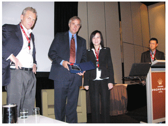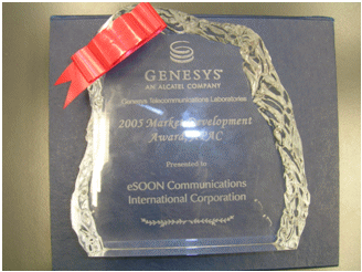 在2006年8月結(jié)束的澳洲墨爾本G-Force會議上,Genesys將 “2005年亞太地區(qū)最佳市場拓展”(2005 Market Development Award,APAC)獎項(xiàng)授予億迅,億迅總裁李冰影女士出席頒獎儀式并代表公司領(lǐng)取該獎。擔(dān)任頒獎人的Genesys全球資深副總裁 James Brooks (卜澤民)先生對億迅近一年來的業(yè)務(wù)拓展情況給予高度評價(jià),并對兩者的合作關(guān)系大加贊賞,稱此番獲獎是名至實(shí)歸的。他說:“隨著亞太地區(qū)經(jīng)濟(jì)的迅猛發(fā)展,客戶互動管理出現(xiàn)新一輪的增長需求。作為長期以來值得信賴的合作伙伴,億迅展現(xiàn)出強(qiáng)大的業(yè)務(wù)技術(shù)能力,在掌握客戶動態(tài)需求的基礎(chǔ)上,以豐富的專業(yè)經(jīng)驗(yàn)為許多企業(yè)提供先進(jìn)解決方案,解決了他們技術(shù)和管理層面的困擾,可以毫不夸張地說億迅為Genesys亞太地區(qū)的發(fā)展做出了杰出貢獻(xiàn)!