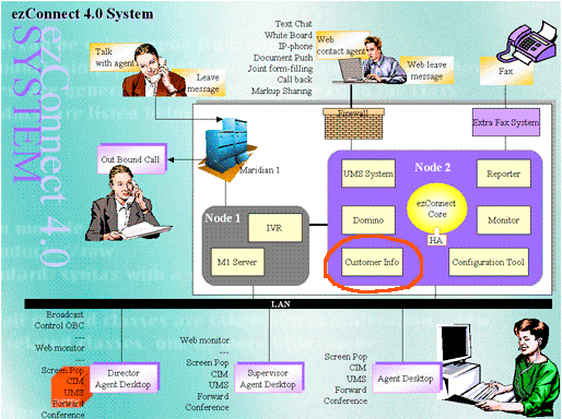 作為一種成功的企業(yè)應(yīng)用案例,這種方案已經(jīng)成功的應(yīng)用在我們的企業(yè)級多媒體呼叫中心 ezConnect產(chǎn)品中,該產(chǎn)品能同時處理傳統(tǒng)呼叫中心的電話請求和以互聯(lián)網(wǎng)為中心的Web 請求,同時配備多種實時交流手段,軟電話功能和基于web 的文本交談,圖片共享,白板,文檔推送,IP電話,UMS, SMS 和WAP 等為客戶提供很方便且實用的功能, 并且提供基于特定技能路由的分配器,同時處理電話和Web請求。而且同時支持多種語言并提供統(tǒng)一的配置工具。當(dāng)該請求到達座席時,在座席的桌面上彈出客戶的基本信息和交易信息,座席可以根據(jù)這些信息給客戶提供更加個性化的服務(wù)。本文就針對該產(chǎn)品的實際開發(fā)和實現(xiàn), 以及工作中的一些感想來與大家共同探討客戶信息管理的應(yīng)用和前景。