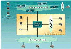 對于普通的傳真機,ExtraFax Router是更合算的選擇。它不僅不需要額外的網(wǎng)關設計,而且它還可以自動計算長途計費單。最重要的是它可以自動尋找最佳路徑 (即最節(jié)省的方式) 通過Internet/Intranet發(fā)送傳真,同時ExtraFax Router基于DID/DTMF/CSID/PORT/Channel的自動分發(fā)到個人的傳真信箱也降低了人工管理的費用并能實現(xiàn)傳真的安全性。