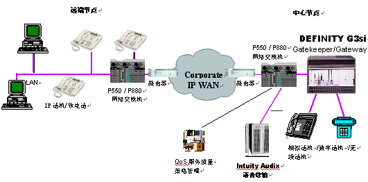 DEFINITY IP 解決方案把AVAYA的功能強(qiáng)大的通信應(yīng)用和能力擴(kuò)展到新的IP環(huán)境中,DEFINITY IP 解決方案集 DEFINITY ECS系統(tǒng)和IP 網(wǎng)絡(luò)于一體。采用該方案,用戶(hù)將獲得 DEFINITY ECS系統(tǒng)的可靠性、功能性和豐富的應(yīng)用,同時(shí)獲得IP網(wǎng)絡(luò)的靈活性和無(wú)所不在的普及性。而且,用戶(hù)還將保護(hù)在現(xiàn)在語(yǔ)音/數(shù)據(jù)基礎(chǔ)設(shè)施以及用戶(hù)和管理員培訓(xùn)方面的投資。