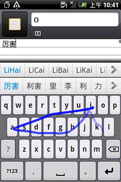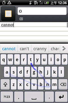 圖:Nuance T9 Trace非連續(xù)重復(fù)字母輸入截圖