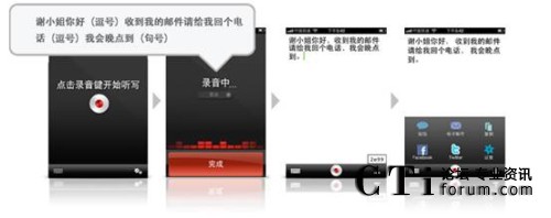 聲龍(Dragon)系列應用軟件是基于Nuance著名的Dragon NaturallySpeaking® 語音軟件開發(fā)的應用,借助語音識別技術,用戶在輕松自然說話時,就可將語音即時轉換成要發(fā)送的短信文本或電子郵件,更新社交網(wǎng)絡狀態(tài)和進行網(wǎng)絡搜索。事實證明,語音識別的速度比使用鍵盤輸入文字快上五倍以上。