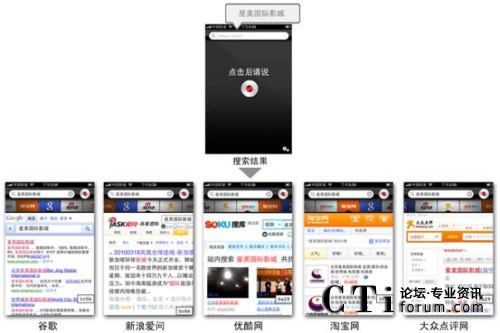 適用于iPhone™、iPad™和iPod touch™的聲龍搜索(Dragon Search)同時也在蘋果 App Store推出,為用戶提供強大的語音搜索功能;谠摦a(chǎn)品,用戶只需說出自己的搜索要求,便可通過移動網(wǎng)絡找到相應的信息和答案。 另外,聲龍搜索(Dragon Search)創(chuàng)新的搜索功能界面(Dragon Search Carousel)還可以支持用戶同時訪問包括谷歌、新浪愛問、優(yōu)酷網(wǎng)、淘寶網(wǎng)和大眾點評網(wǎng)等多個熱門網(wǎng)站和搜索引擎,并在幾秒鐘內(nèi)獲得來自多個內(nèi)容來源的搜索結果。
