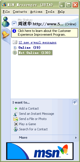 5月26日,微軟最新即時通訊軟件MSN Messenger的最新版本MSN Messenger Beta 6.0.0250被提前遭遇外泄,使得大家提前領(lǐng)略到了微軟最新的即時通訊軟件風(fēng)采。這也是微軟.net計劃中的一個重要組成部分,也讓我們看到了一些微軟“格林威治(Greenwich)”的影子。“格林威治(Greenwich)”――是微軟基于.net戰(zhàn)略的能夠?qū)崟r進(jìn)行通信等的服務(wù)器軟件的開發(fā)代號。由于未對外正式發(fā)布,此次公開的是MSN