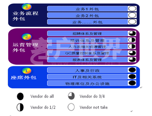 所以雙方在選擇的初始過程當(dāng)中就外包業(yè)務(wù)的戰(zhàn)略和目標(biāo)進行明確地溝通,達到雙方地一致理解和認(rèn)同,是成功的第一步。