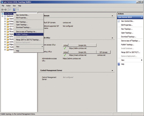 感到滿(mǎn)意后,可使用拓?fù)渖善鱽?lái)驗(yàn)證拓?fù)。如果它作為有效拓(fù)渫ㄟ^(guò)驗(yàn)證,則可以發(fā)布。發(fā)布拓?fù)鋾r(shí),Lync Server 會(huì)將拓?fù)浯嫒胫醒牍芾泶鎯?chǔ)。如果尚未創(chuàng)建中央管理存儲(chǔ),Lync 會(huì)在您提供有效拓?fù)洳?zhǔn)備發(fā)布拓?fù)鋾r(shí)創(chuàng)建中央管理存儲(chǔ)。在所處環(huán)境的各臺(tái)服務(wù)器上安裝 Lync Server 時(shí),服務(wù)器會(huì)從中央管理存儲(chǔ)讀取拓?fù),并安裝自身以配合其在您的部署中的角色。