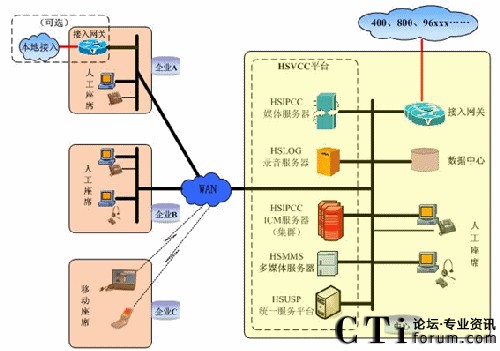 - 接入部署:客戶只需確定中繼接入的號碼(包括400、800、95xxx等)、規(guī)模,通過運(yùn)營商將號碼指向產(chǎn)業(yè)基地統(tǒng)一接入平臺即可完成部署。